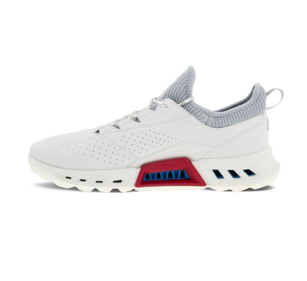 Cải tiến trên nền tảng bộ sưu tập giày chơi golf hiệu suất cao BIOM® COOL PRO, giày chơi golf thế hệ mới ECCO M GOLF BIOM® C4 được thiết kế hiện đại, đậm chất thể thao đinh cao, mang lại sự thông thoáng hoàn hảo, hiệu suất cao cho gôn thủ trên sân. Tích hợp công nghệ GORE-TEX SURROUND® chống thấm nước 100%, và hệ thống ống dẫn khí ở đế giữa, tạo nên khả năng thở 360 ° cho đôi chân. Mũ giày làm từ chất liệu da ECCO Performance cao cấp, phần vớ lưới ôm vừa vặn, siêu co giãn, tạo sự thoải mái và dễ mang tháo. Đế ngoài ECCO MTN GRIP tích hợp công nghệ BIOM® NATURAL MOTION® tăng độ bám, giữ thăng bằng và hỗ trợ động tác xoay trong suốt quá trình thực hiện cú swing.