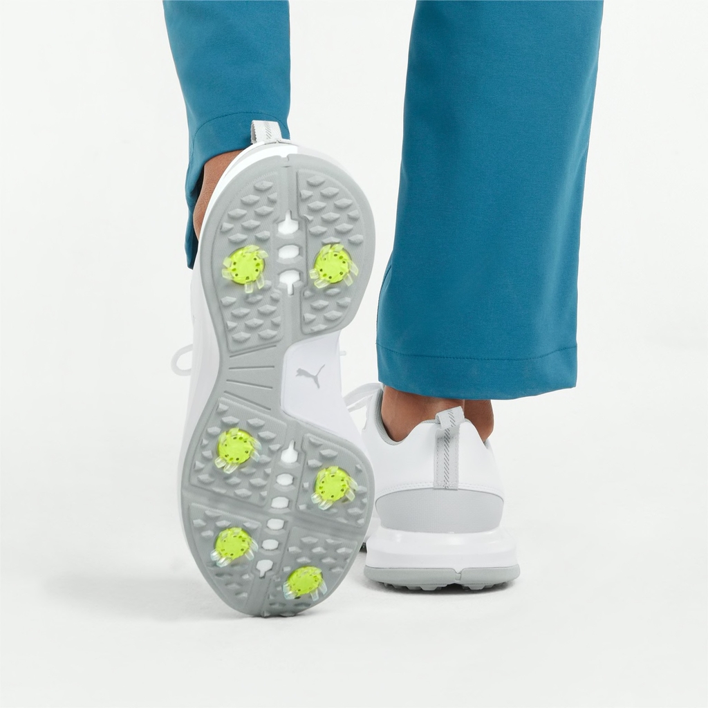 Fusion FX cung cấp đế giữa  và trải dài suốt phần đế giày với công nghệ FUSION FOAM,  mang lại sự thoải mái cả ngày trong khi đế ngoài 6 chấu đinh  cung cấp lực kéo và sự tự tin để thực hiện cú swing ở bất kỳ địa hình nào